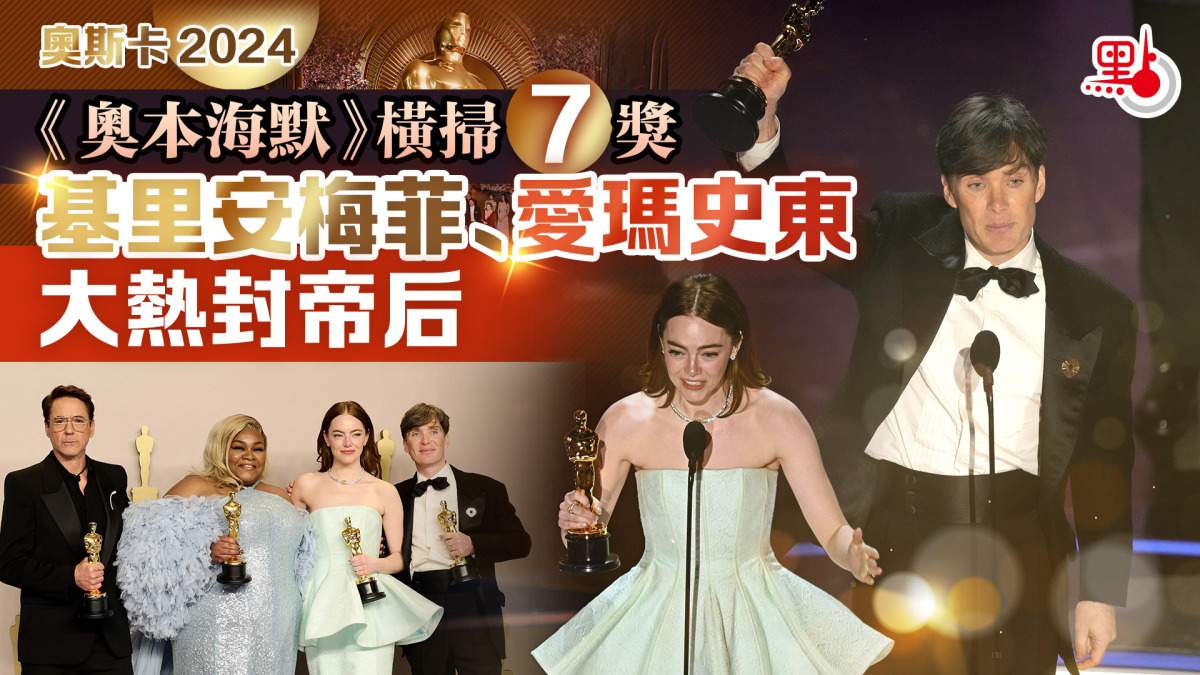 【點新聞報道】荷里活年度影壇盛事「第96屆奧斯卡頒獎典禮」今日(11日)於美國洛杉磯杜比劇院(Dolby Theatre)舉行。荷里活鉅片《奧本海默》(Oppenheimer)橫掃七大獎項,基里安梅菲(Cillian Murphy)及愛瑪史東(Emma Stone)分別憑藉《奧本海默》及《可憐的東西》獲封帝后。日本動畫大師宮崎駿新作《蒼鷺與少年》摘得「最佳動畫長片獎」,是21年後再度奪此殊榮。而全球海撈近15億美元票房《Barbie芭比》失落多項提名,最終僅抱回一座小金人。