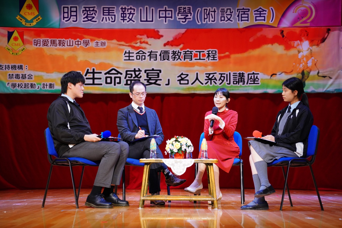 明愛馬鞍山中學於本年度繼續舉行「生命有價教育工程—生命盛宴名人系列講座」,邀請不同界別的知名人士分享人生經歷,延續學校「生命有價」的精神。講座邀得曾在香港科技大學擔任商學院課程總監的千雪小姐擔任嘉賓,向師生分享她由學校社工至成為香港科技大學擔任商學院課程總監,最後辭去高薪厚職入行成為演員工作的經歷及體會。