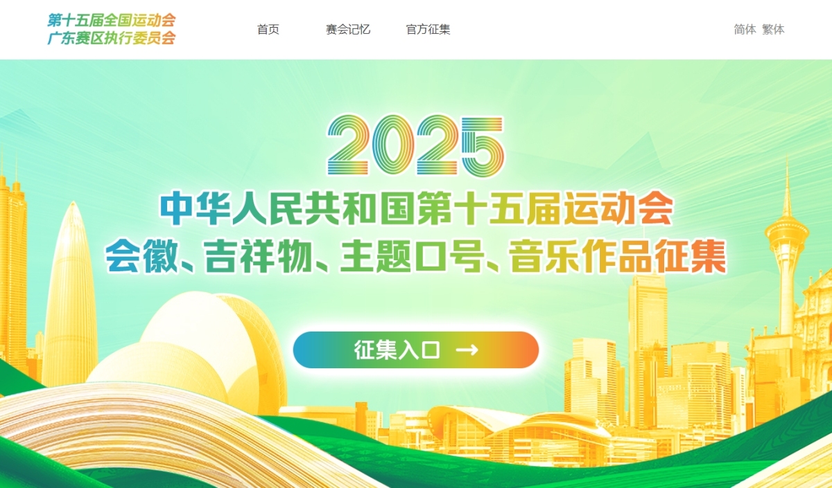 【點新聞報道】由粵港澳聯合承辦的第十五屆全運會將於明年舉行,各項籌備工作正在緊張有序進行中。第十五屆全國運動會廣東賽區執行委員會今日(13日)公布,面向全球徵集十五運會會徽、吉祥物設計方案,主題口號及音樂作品。點新聞記者留意到,今次大賽專頁特設繁體字切換選項。