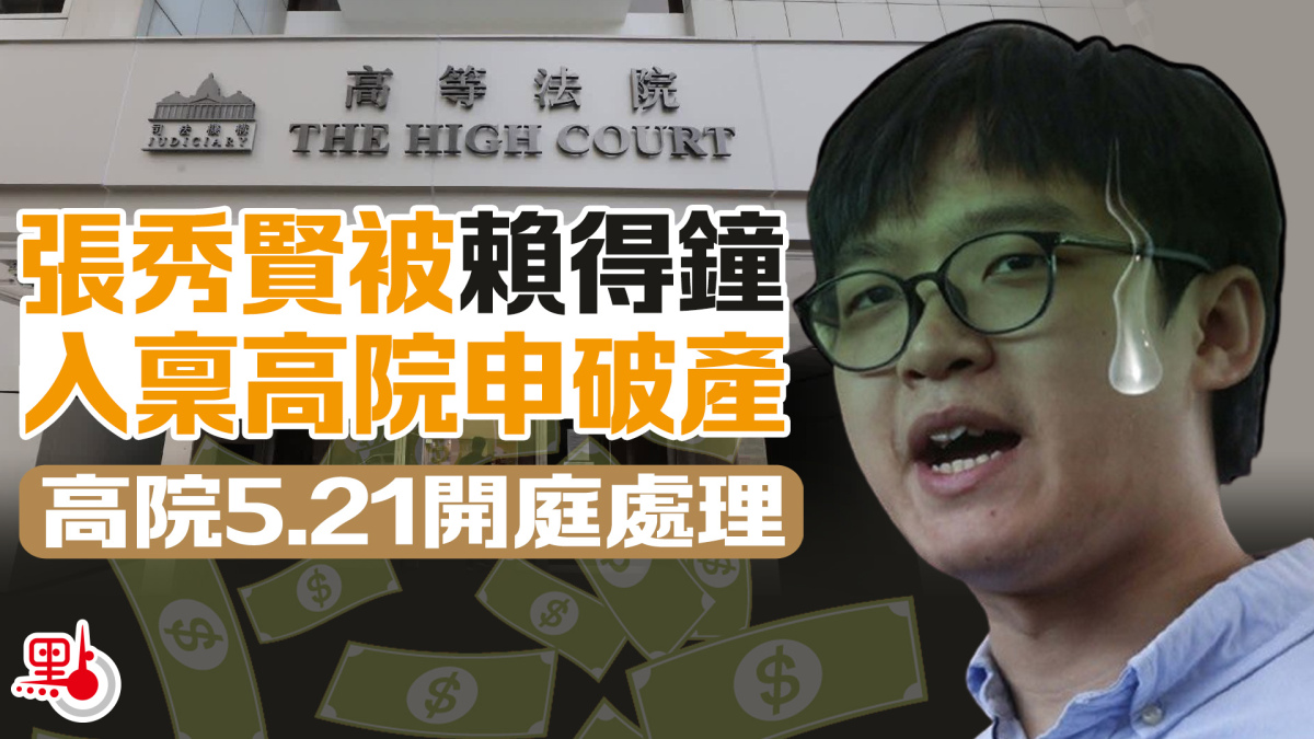 攬炒派前元朗區議員、香港中文大學學生會前會長張秀賢,被爆四處借錢不還,前日遭考評局通識科委員會前主席賴得鐘入稟高院申請破產。根據司法機構網站顯示,該破產呈請將於今年5月21日開庭處理。