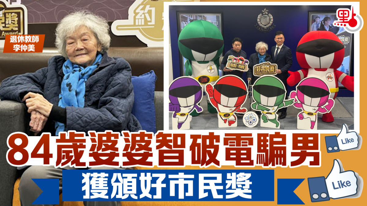 香港警方「好市民獎頒獎典禮2023」將於今年3月17日舉行,80名好市民及多間機構受到嘉許,其中兩名得獎者日前向傳媒分享好市民故事。84歲退休女教師李仲美是今屆最年長的得獎者,她於2022年11月接獲冒充其兒子的騙徒來電索取5萬元「保釋金」,識破其詭計,並與騙徒周旋,最後配合警方「引蛇出洞」拘捕騙徒。