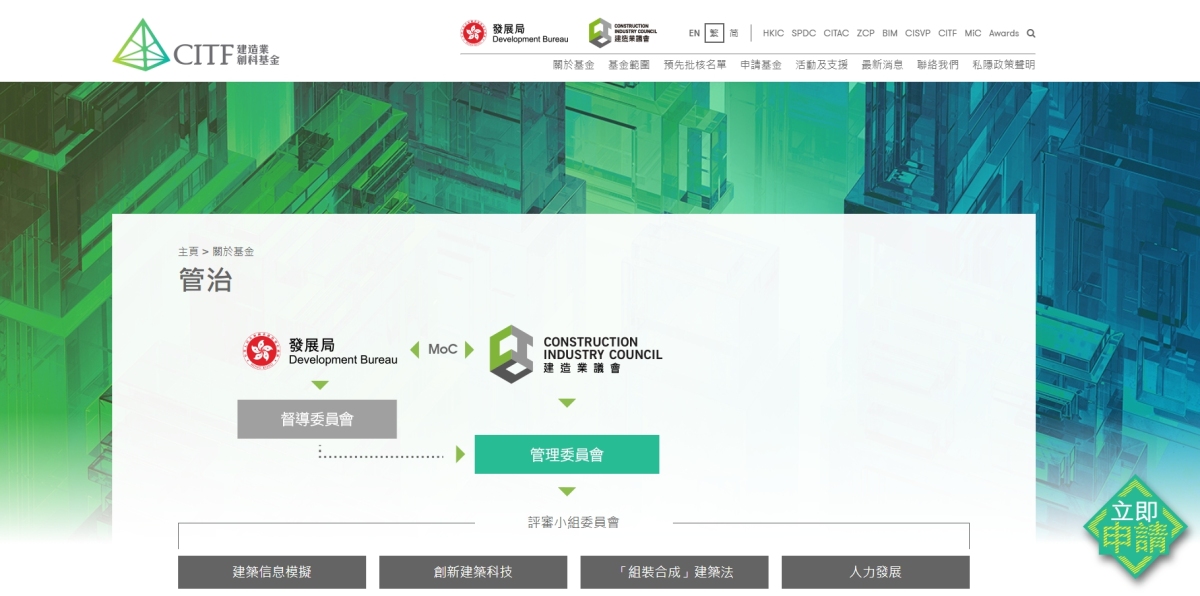 政府於2018年成立建造業創新及科技基金,旨在提升企業及從業員應用新技術的能力,並支援業界應用創新科技。政府委託建造業議會負責基金的管理和行政工作。截至今年2月,基金已批出逾3700份申請,批出資助金額逾11.5億元。督導委員會成員由業內不同界別人士組成,就基金的運作向政府提供意見。
