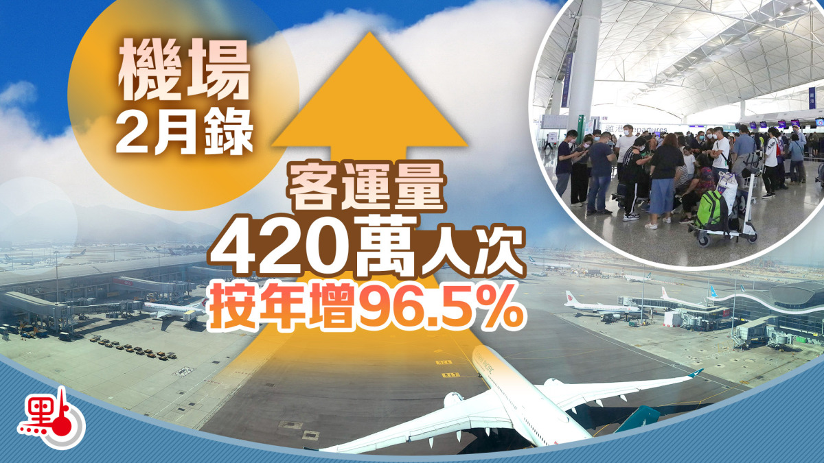 【點新聞報道】香港機場管理局今天(21日)公布香港國際機場2月份航空交通量。月內,機場錄得客運量420萬人次,飛機起降量27615架次,與去年同月的低基數比較,分別按年增加96.5%及69.3%。