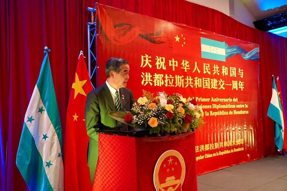 【點新聞報道】中國與洪都拉斯建交一周年招待會昨日(22日)舉行,全國政協副主席、香港特別行政區前任行政長官梁振英在會上致辭。