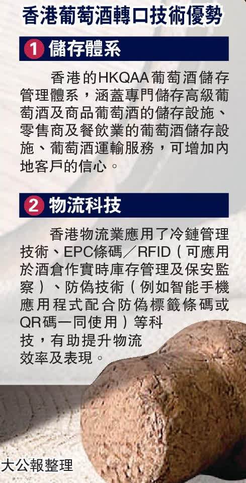 香港要做好亞太區葡萄酒貿易及分銷中心,冷鏈運輸和儲存不可缺少。身兼香港品質保證局「葡萄酒儲存管理體系認證」計劃技術委員會委員的香港物流商會主席鍾鴻興表示,有關認證是國際首個同類認證計劃,可很好地維持葡萄酒來港後品質,使得全球紅酒貿易商對香港有信心。