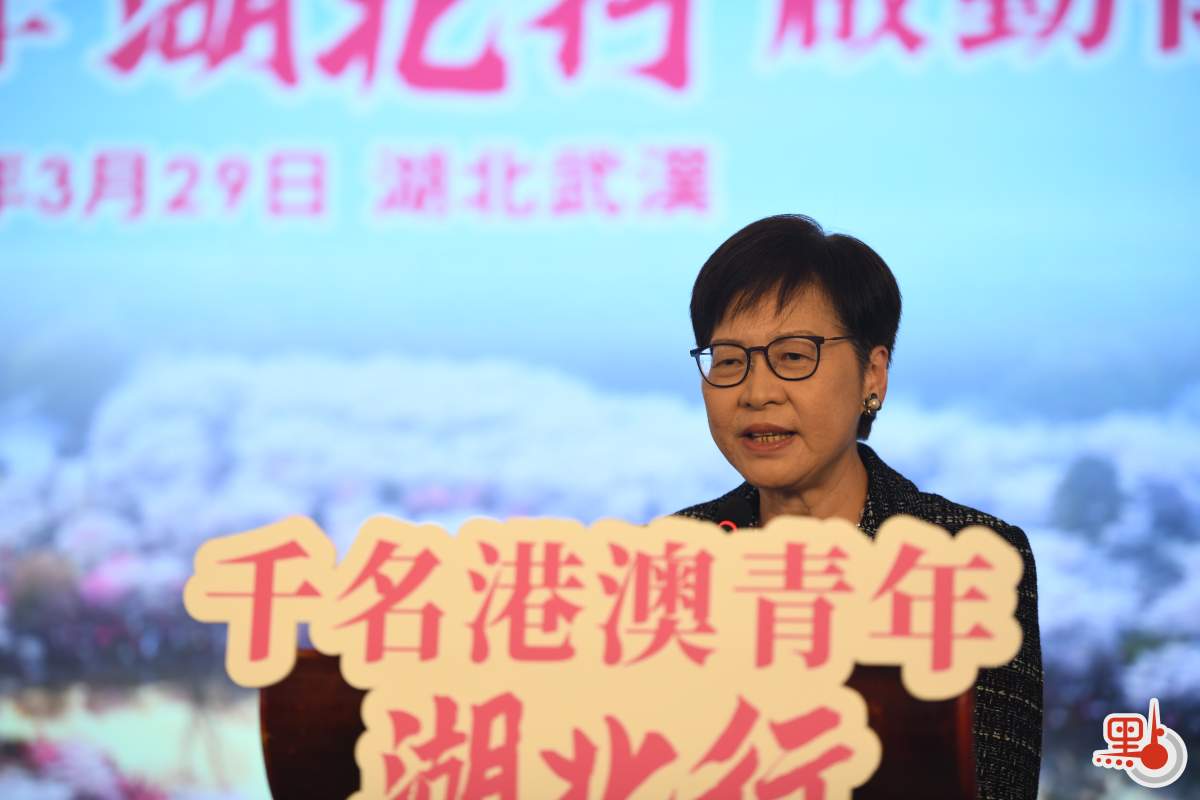 林鄭月娥在致辭時讚揚「湖北是一個非常好的地方」,她已經去武漢東湖櫻園欣賞了美麗的櫻花,並將隨團前往世界聞名的武當山。她希望更多的港澳青年來湖北,除了讀書、就業、創業,亦可將湖北當作與家人、朋友遊玩的地方,希望這些良好的互動,能建立港澳青年跟內地青年更深厚的感情,對今後香港更好融入國家發展大局有更正面、有力的作用。