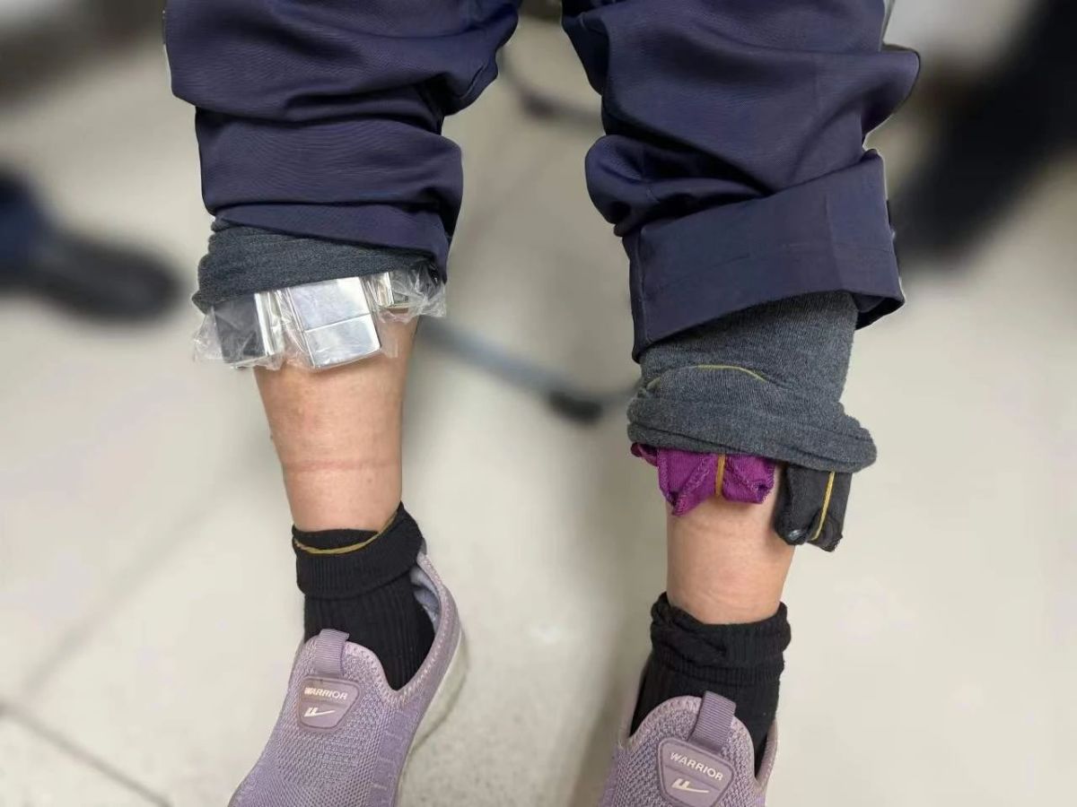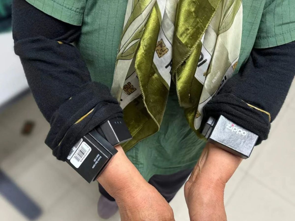 當日18時55分左右,一名旅客經羅湖口岸旅檢入境大廳進境時,步履匆匆、神色緊張,被該關關員攔截檢查。經檢查,在該旅客後背部、左右小腿處、左右小臂處查獲綁藏的ZIPPO打火機共計17個。