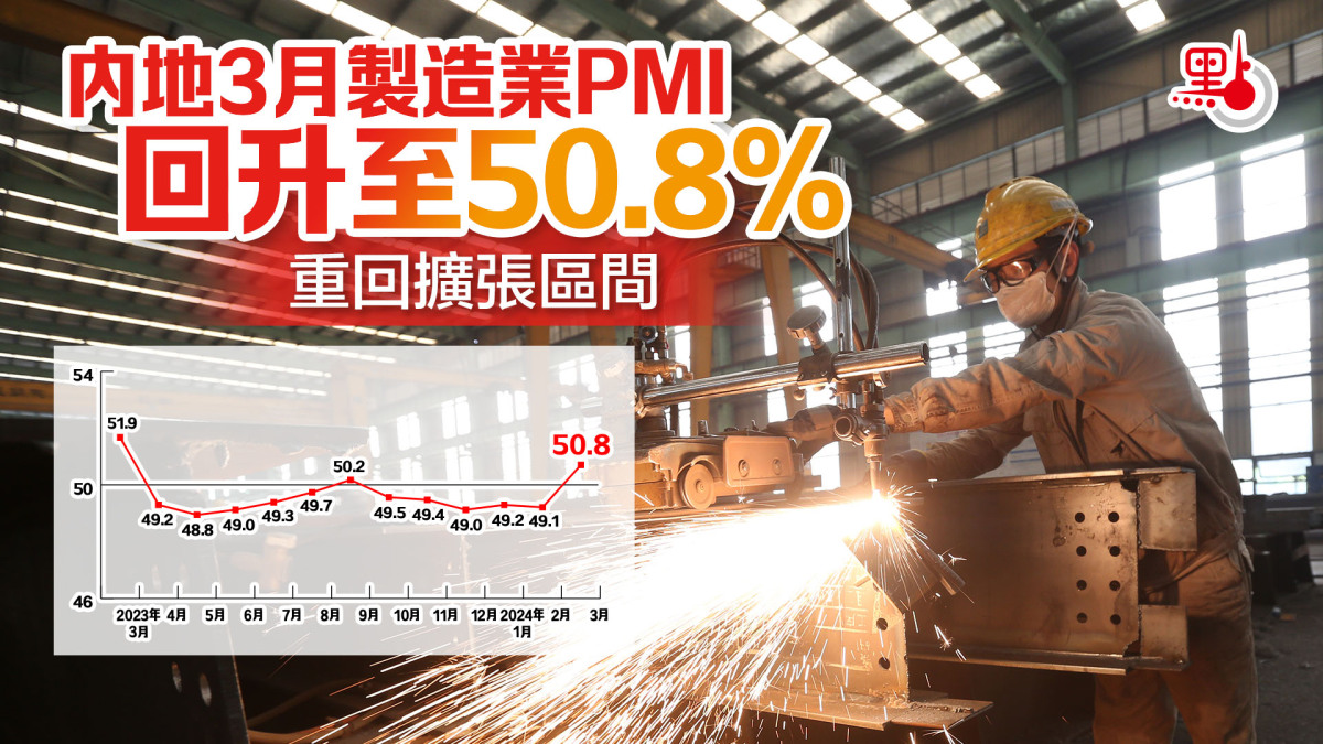 【點新聞報道】中國物流與採購聯合會、國家統計局服務業調查中心今天(31日)公布3月份中國採購經理指數。其中,製造業採購經理指數(PMI)為50.8%,較上月上升1.7個百分點,連續5個月運行在50%以下後,重回擴張區間。