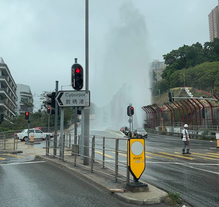 【點新聞報道】港島薄扶林道近域多利道於今日(31日)下午2時許爆地下水管,噴出約20米高水柱,猶如噴泉湧出。