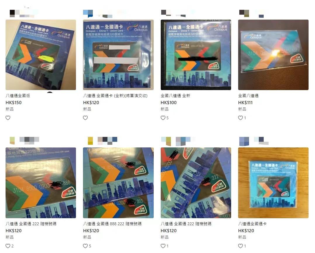 點新聞記者在網上交易平台Carousell發現有不少人轉售全國通卡,叫價最平100元賺「跑腿費」,最高可見260元、280元;部分高價卡都有「靚冧巴」,如「888」「222」等。