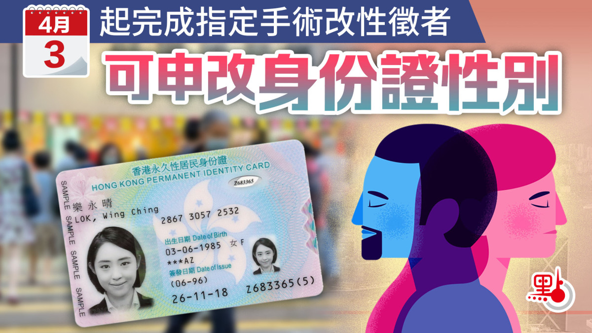 【點新聞報道】因應終審法院在2023年2月6日就Q及Tse Henry Edward訴人事登記處處長一案(終審法院民事上訴2022年第8及9號)(Q及Tse一案)所作出的判決,政府今日(3日)公布,申請更改香港身份證上性別記項的政策(更改身份證性別記項政策)經已修訂。由即日起,除了已完成整項性別重置手術的人士外,一般未有完成整項性別重置手術的人士,若已完成指定手術改變其性徵,並同時符合各項經修訂的資格準則及要求,將可申請更改其香港身份證上的性別記項。