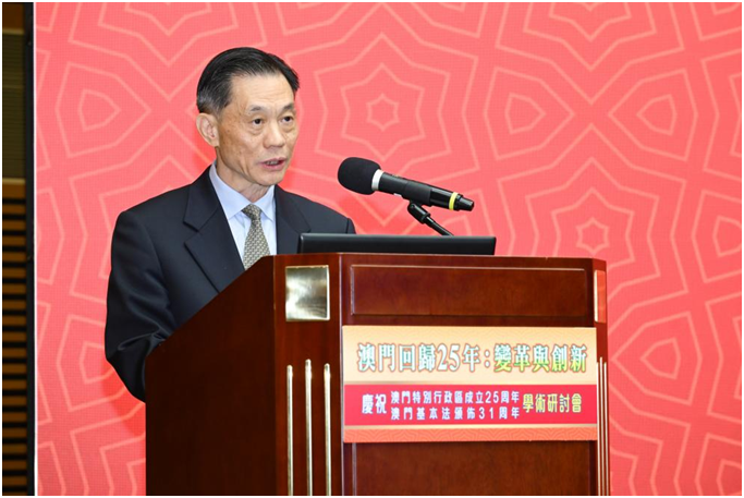 【點新聞報道】3月28日,全國港澳研究會會長鄧中華在澳門出席由澳門基本法推廣協會、澳門特區政府法務局、市政署、教育及青年發展局聯合主辦的「澳門回歸25年:變革與創新」學術研討會並作開幕致辭。