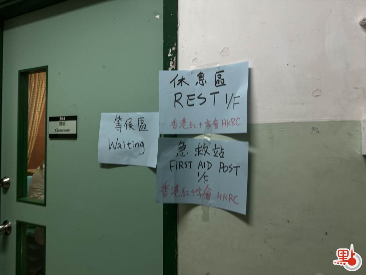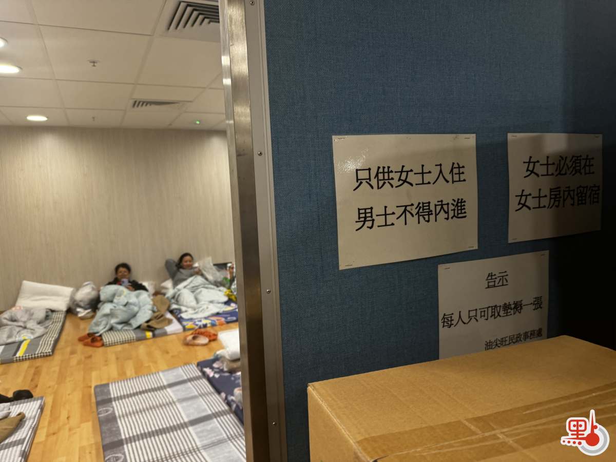 記者繼續來到3樓的登記室查看,看到仍然有二十多名居民在等待被分配床鋪。一位菲律賓居民表示不知道自己今晚會住在哪裏,記者幫她詢問工作人員得知,今天來庇護中心登記的居民都會被安置在一樓的大會堂內,那邊會繼續增加地鋪。