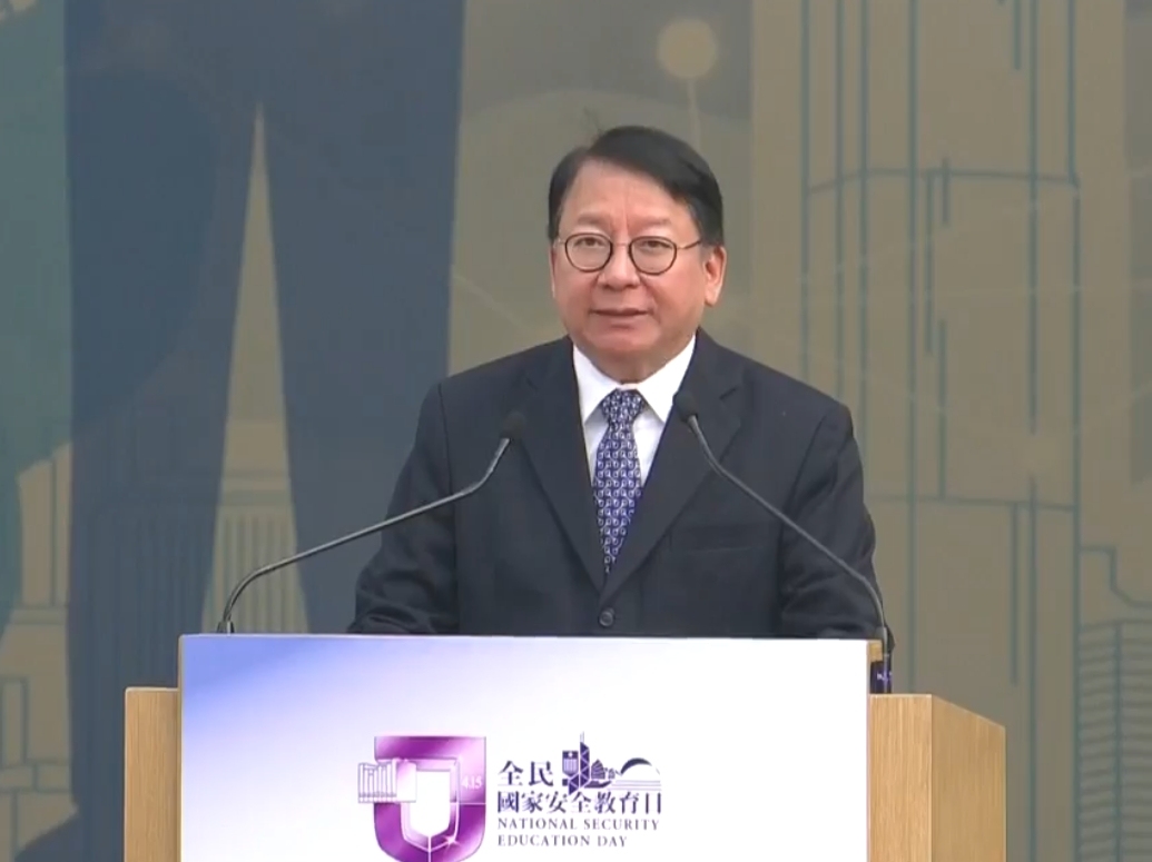 【點新聞報道】為響應「全民國家安全教育日」,保安局帶領轄下紀律部隊於今日(15日)早上在香港警察學院聯合舉行升旗儀式。政務司司長陳國基致辭時表示,國安才能港安,國安才能家安;國家安全是社會繁榮穩定、人民安居樂業的根本。