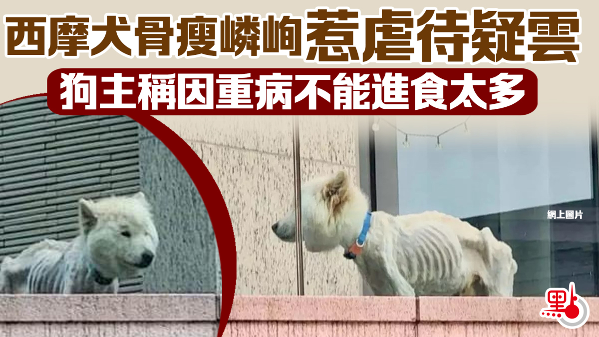 有市民近日發現九肚山駿嶺薈一個單位的花園,有一隻瘦骨嶙峋的西摩犬,惹來虐狗疑雲,遂通知愛護動物協會跟進。據報該狗主指,狗狗因癌症失去胰臟,導致不能進食太多。
