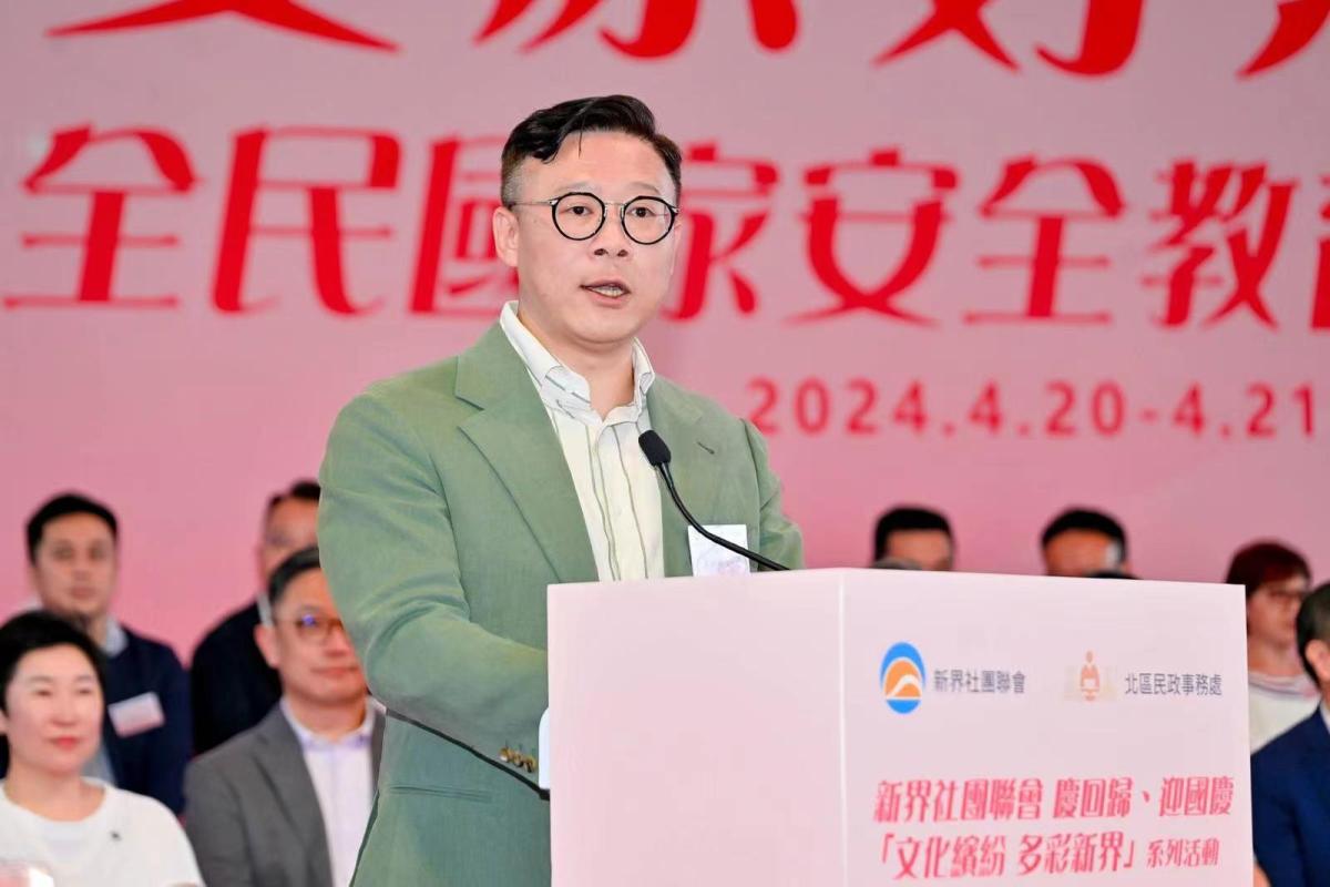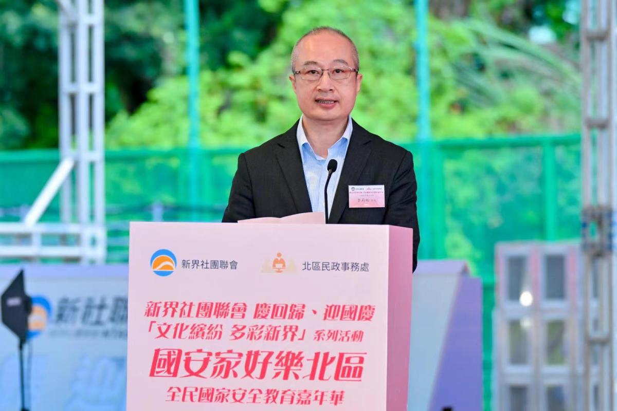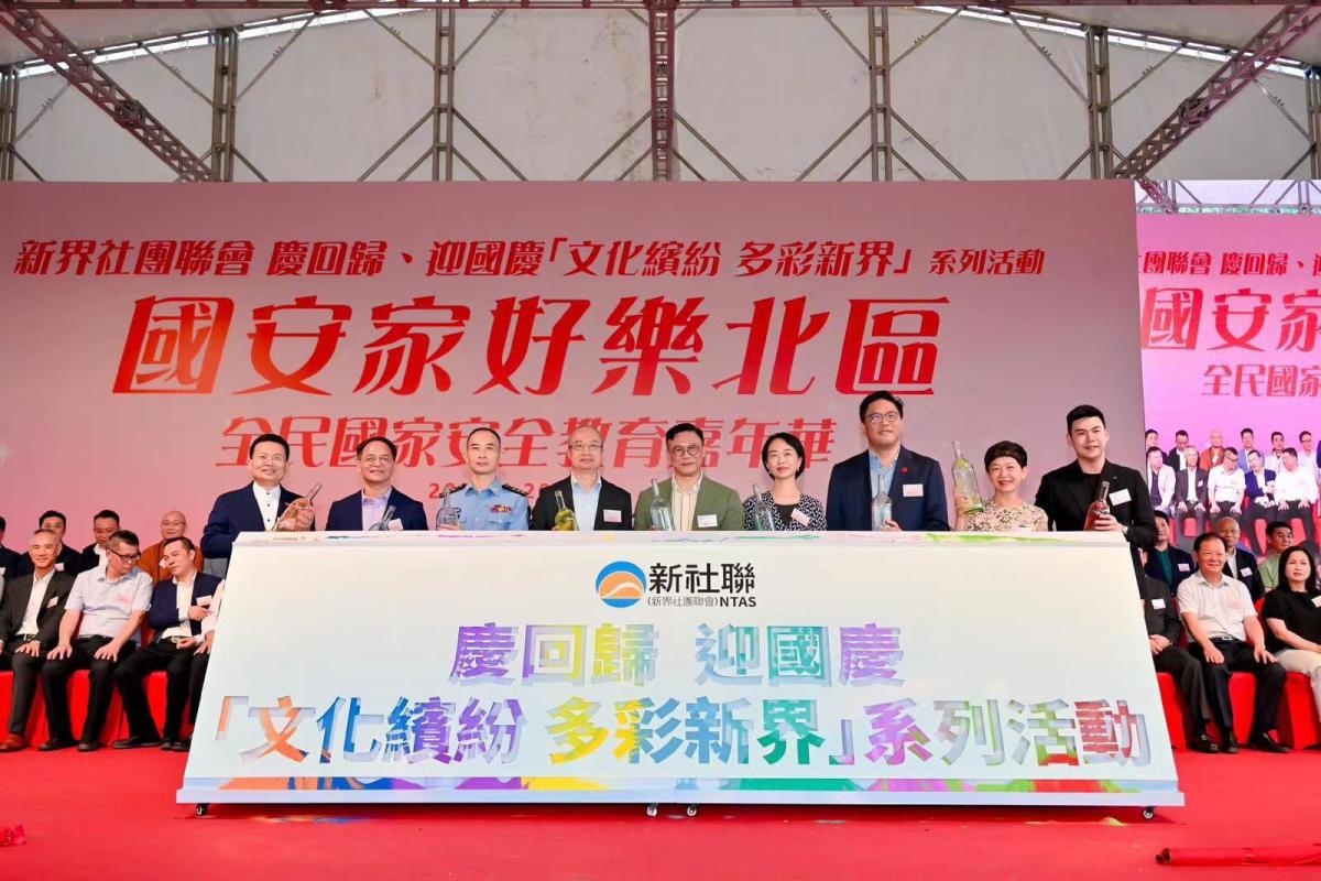 譚鎮國指出,新社聯今年特別推出慶回歸、迎國慶「文化繽紛 多彩新界」系列活動,將在新界九區,每半個月至一個月輪流舉辦一場面向公眾、開放式的大型文化主題活動,直到10月國慶當月,舉辦一場最大型的慶祝巡遊,弘揚中華優秀傳統文化和愛國愛港的主流價值觀,總共會進行12場。「國安家好樂北區」全民國家安全教育嘉年華是系列活動的第一場,將國安知識圖片展覽融入市集攤位、互動遊戲當中,配合民俗展示、舞台表演、文創禮品等安排,更特別在嘉年華前後推出國家安全主題幼兒填色比賽、線上國安知識問答競賽,希望幫助市民在趣味互動的形式中吸收更多有關國家安全的知識。