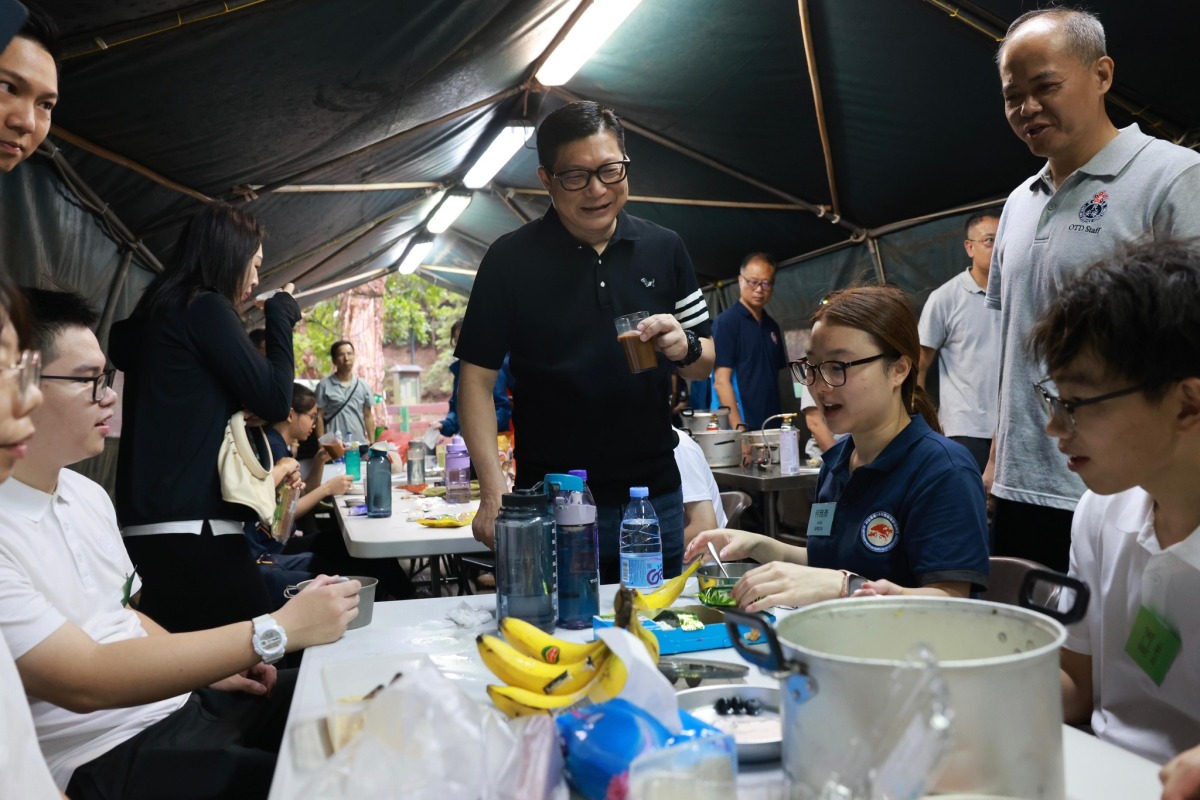 保安局局長鄧炳強在社交平台分享,今朝天未光,一班青年就要集體操練,他在早操時段突襲,支持他們完成刻苦的訓練。鄧局長更鼓勵地說:「之後大家仲要原野烹飪煮早餐,辛苦勞動之後,食乜都咁好味!」