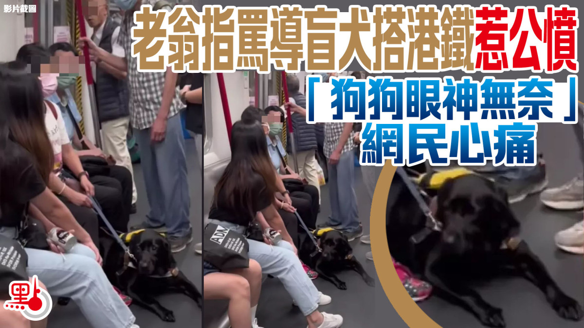 導盲犬是視障人士的「明燈」,但不時仍有歧視導盲犬的事件發生。近日網上流傳一段影片,可見在港鐵車廂內有導盲犬慘遭一名老翁指罵,期間女主人和乘客出聲反駁,而導盲犬全程乖乖伏在地上,眼神甚為無奈。