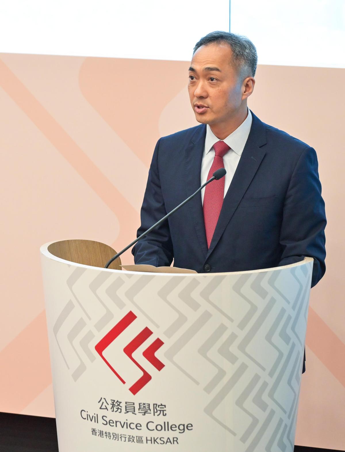 公務員學院院長郭蔭庶在講座致辭時表示,特區政府一直秉持着國家以人民為中心的施政理念,強調為市民做實事,讓市民安居樂業。公務員學院的使命,就是通過加強培訓,建立一支愛國愛港、德才兼備、以民為本的公務員團隊。學院將「以民為本」及「同一個政府」的服務理念,全方位融入各項課程中,建構以市民需要為出發點,以國家和香港整體利益為依歸的服務文化,體現對國家施政理念的落實,發揮「愛國者治港」的力量和價值。