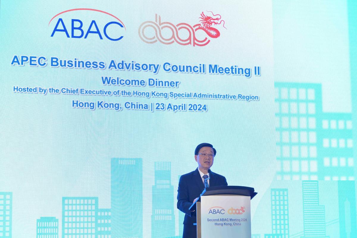 【點新聞報道】行政長官李家超今日(23日)為出席亞太區經濟合作組織商貿諮詢理事會2024年第二次會議的代表設歡迎晚宴。會議於4月22至25日在香港舉行。