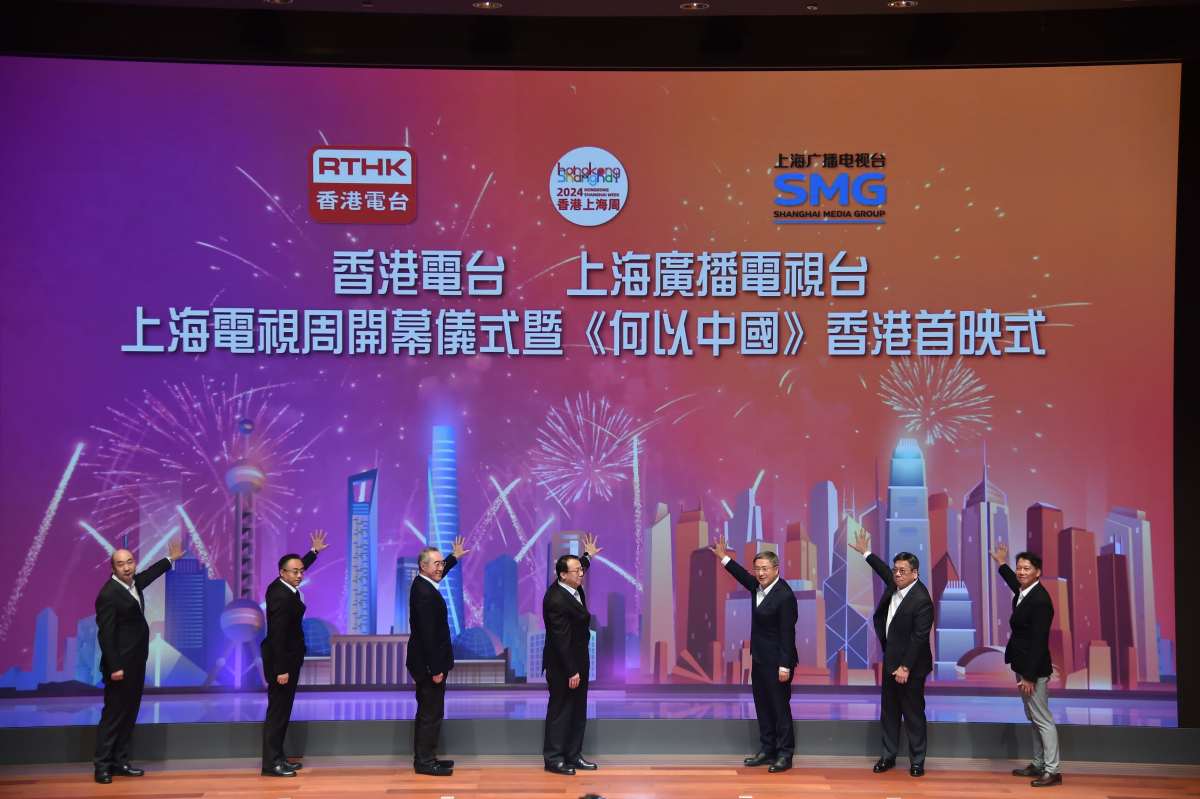 【點新聞報道】「香港上海電視周」開幕式暨《何以中國》香港首映式今日(27日)在香港故宮文化博物館演講廳舉行。在「香港上海電視周」期間,香港電台與上海廣播電視台聯袂推出多個文化和專題節目,包括大型紀錄片《何以中國》、介紹海派文化的《下一站》、細看上海博物館珍寶的《了不起的寶藏·探寶上博》第二季及人物專輯節目《相會雙城》。香港電台更在前日與上海廣播電視台簽署合作備忘錄,未來將進一步深化滬港雙城間的友好合作,說好香港和上海雙城故事。