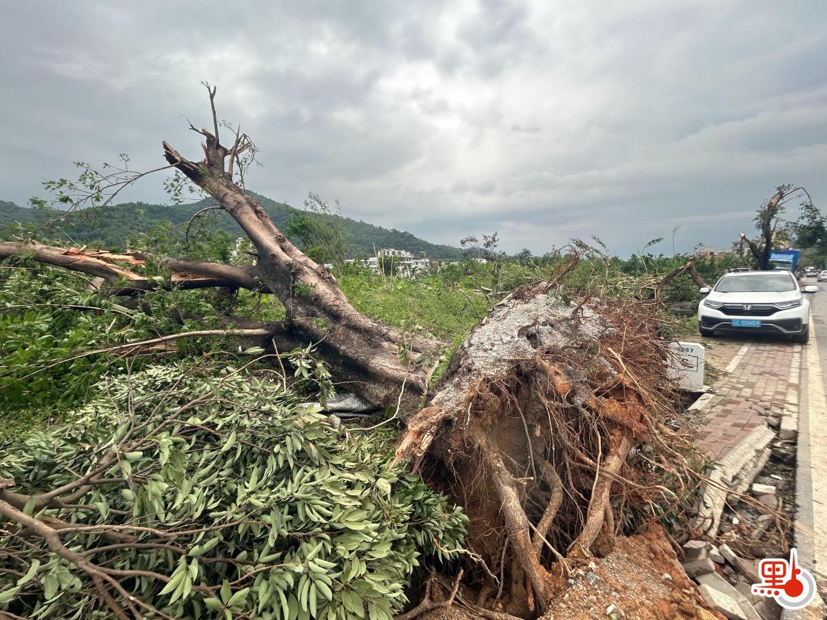 在良沙路光明村路段,一棵直徑超過1米的大樹倒伏在地上,樹根已完全暴露,樹幹以上已經全部被撕裂或斷枝。村民說,龍捲風所經過的地方,基本沒有一棵完整的樹木,大部分從樹幹部位就折斷了。