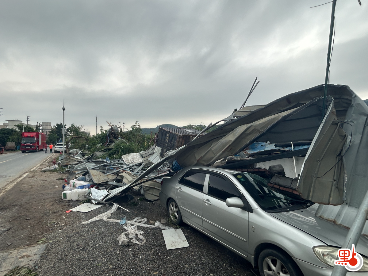 「我們看到不遠處的龍捲風後,馬上把捲閘門關上,不到1分鐘,大風就來了,把我們店前後的捲簾門都吹走了。」真真百貨店店主庾姐回憶27日的一幕,依然面帶恐懼深色。當時,不少鐵片從他們店內前門吹向後門,穿堂而過,其中有一塊巨大的鐵片,還差點砸到夫妻二人的頭。他們躲在桌子底下,但桌底附近也有鐵皮「飛舞」。