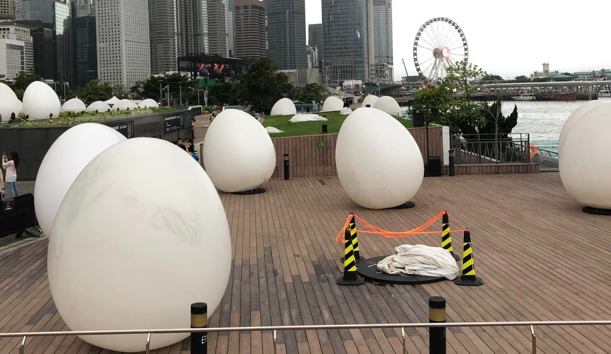 【點新聞報道】「teamLab:光漣」由3月25日至6月2日晚上在金鐘添馬公園舉行,公園內不同位置放置過百個「發光蛋」供市民免費參觀。不過,有網民近日於社交平台上載圖片,指有「發光蛋」塌下,只餘「蛋殼」。
