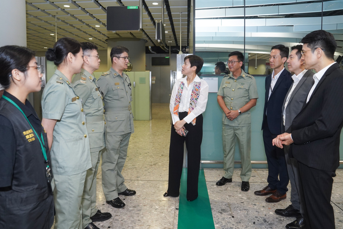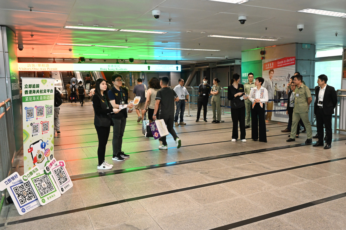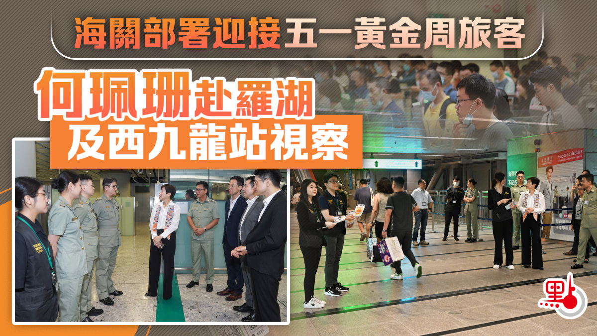 海關關長何珮珊今日(30日)早上前往羅湖管制站及高鐵西九龍管制站視察,探訪當值的前線人員,了解及指導口岸在內地勞動節黃金周的部署。何珮珊表示,海關將靈活調配人手確保各口岸運作暢順,加強各口岸的清關工作,確保旅客可快捷暢順地過關。香港海關亦會與內地及澳門海關保持緊密聯繫,實時通報各口岸的最新情況,適時作出協調及部署。