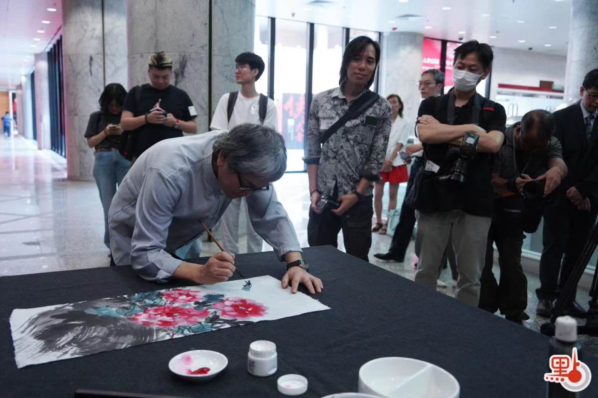 【點新聞報道】香港文化博物館今日(30日)下午舉行「墨境淋漓─陳榮森捐贈作品展」新聞界預展。香港文化博物館署理總館長鄧民亮和藝術家陳榮森介紹展覽內容、重點展品和相關活動,陳榮森即席示範潑彩潑墨繪畫。展覽明日(5月1日)起在香港文化博物館一樓趙少昂藝術館舉行,公眾可免費入場。