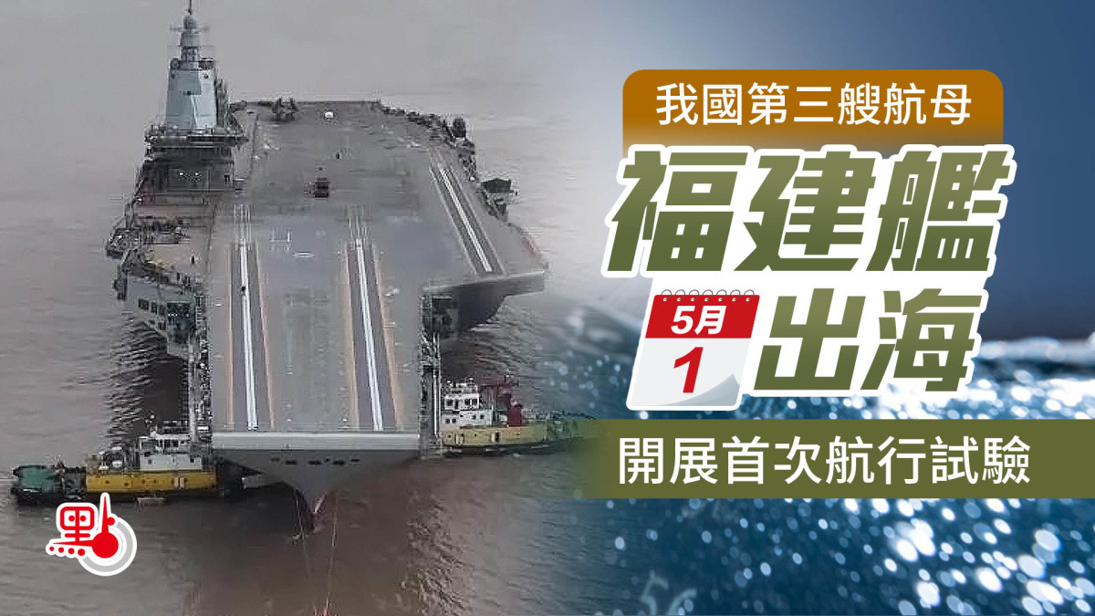 【點新聞報道】據央視新聞報道,今天(5月1日)上午8時許,我國第三艘航空母艦福建艦從上海江南造船廠碼頭解纜啟航,赴相關海域開展首次航行試驗。