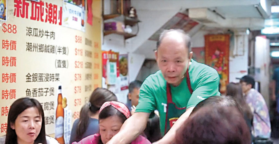張伯是一名大廚,他工作的飯店在九龍城已開業約28年,是一間名副其實的老店。小小的店面布置相當老舊,斑駁的餐牌,有年代感的裝修,甚至牆壁也被煙火燻到發黑。但歲月的沖刷沒有影響店舖的生意,香港文匯報記者到訪當日,饕客絡繹不絕,絲毫不介意在狹窄的空間裏就餐。他們更在意的,是那裏的美味,以及在杯盤狼藉中所升騰的人情味。