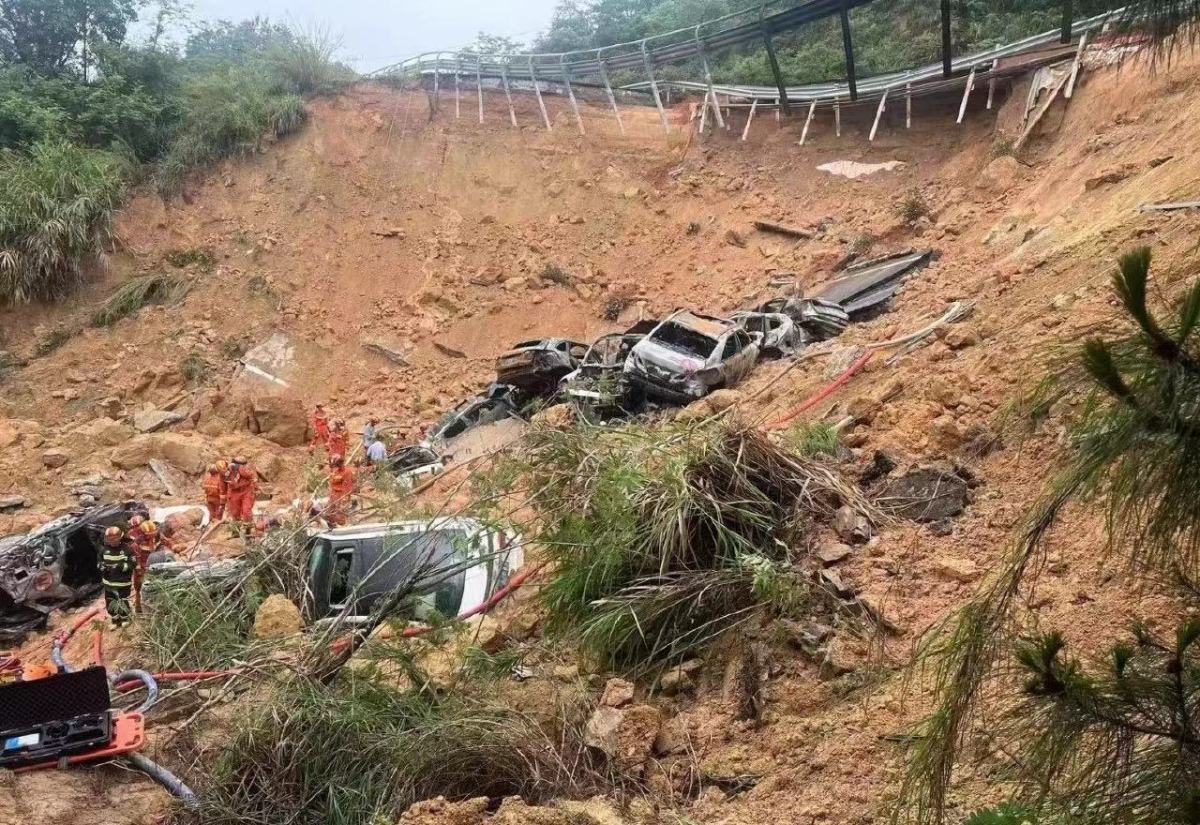 從網友現場拍攝的照片可見,事故現場不少車輛「車疊車」堆積在一起,多數已經被燒成車骨架。有專業人士分析,由於凌晨行車,車主注意力不如白天,道路發生塌方,特別是下坡塌方,車主很難躲避,相信是此次造成較大傷亡的重要原因之一。