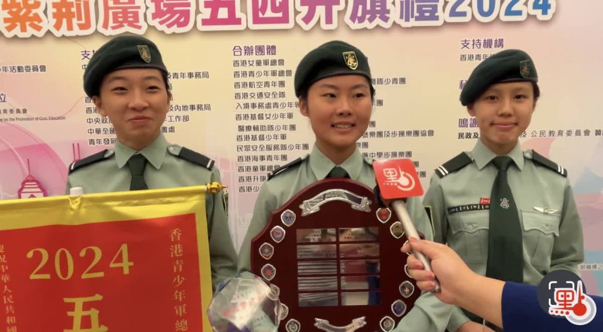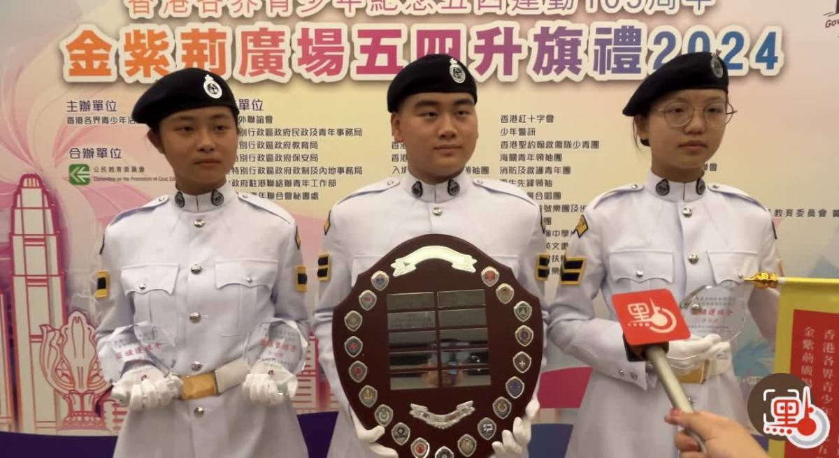 民眾安全服務隊少年團的成員分享:「從練習到今天站在領獎台,是一件非常有幸福感的事」「雖然訓練了很久因落雨未能進行儀式,感到非常遺憾,但通過之前的訓練,提升了步操技巧,其實『五四』精神不一定要通過升旗這一種方式來展現,在平時的訓練和日常生活中也可以將青年的精神傳承下去。」