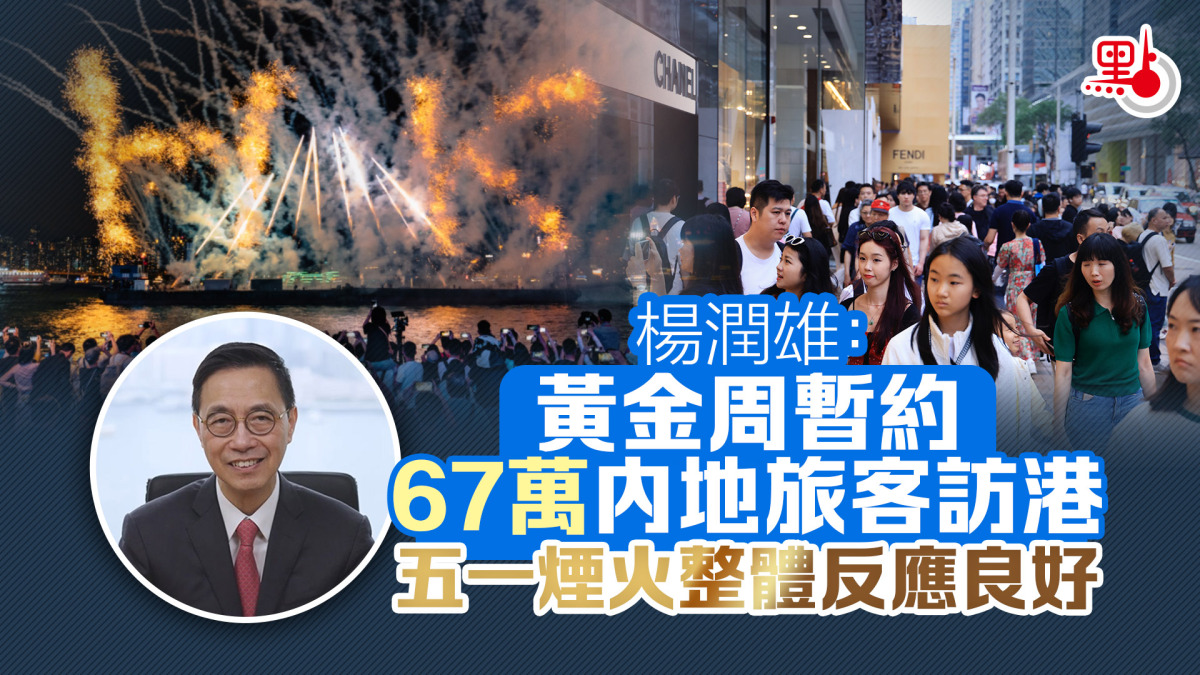 【點新聞報道】內地五一黃金周假期今日(5日)結束,文化體育及旅遊局局長楊潤雄表示,截至昨天本港錄得大約67萬內地旅客人次,而當局原本預計五一黃金周期間有大約80萬內地旅客訪港,政府預計此次黃金周內地旅客能為本港額外帶來超過20億元消費收益。