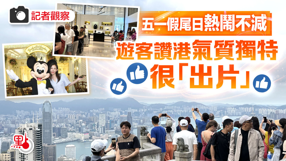 【點新聞報道】適逢內地五一黃金周最後一日,連日陰雨後本港終於放晴,點新聞記者今日(5日)走訪尖沙咀和山頂,見到遊客數量雖較前幾日有明顯減少,但熱門景點和商場仍有不少遊客,市況十分熱鬧。