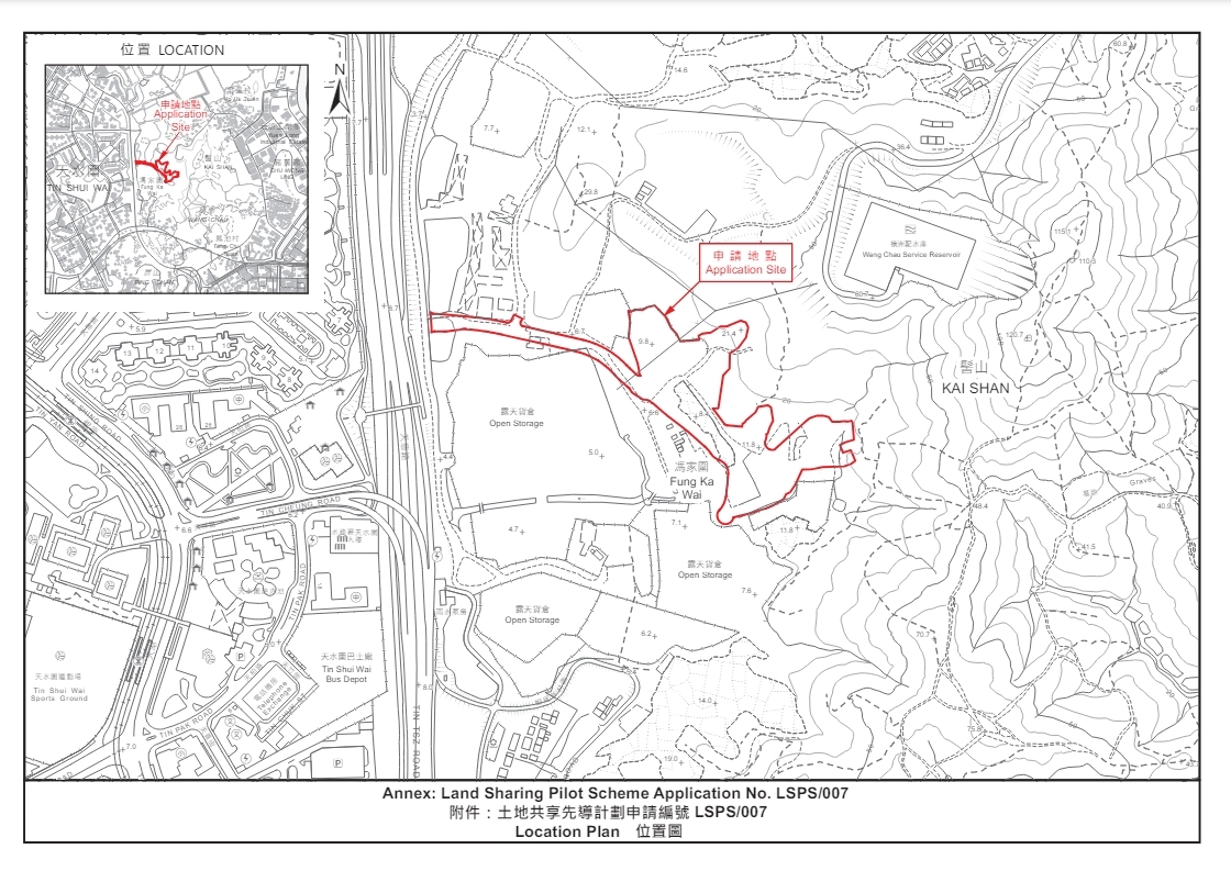 該宗申請由Brasilia Limited提交,母公司為利安投資(集團)有限公司。涉及土地佔地約3.1公頃,現時劃為「康樂」及「鄉村式發展」地帶,建議興建約1500個公營房屋或「首置」單位、約700個私營房屋單位和附屬設施,住用總樓面面積約117,400平方米。發展局表示,轄下土地共享辦事處會協調相關部門,以促進並加快處理及審核申請。