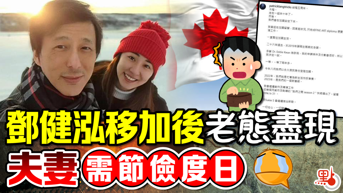 藝人鄧健泓2022年宣布與老婆石詠莉以永久居民身份移民加拿大,日前是鄧健泓正式「入伍」的大日子,他於社交平台Instagramn晒出與老婆的甜蜜慶生照,並留言寫道:「入伍。鄧太@sukieshek 第12次同我慶祝生日。今年應該收得最多祝福,因為我們的YT channel關係,感謝大家。」