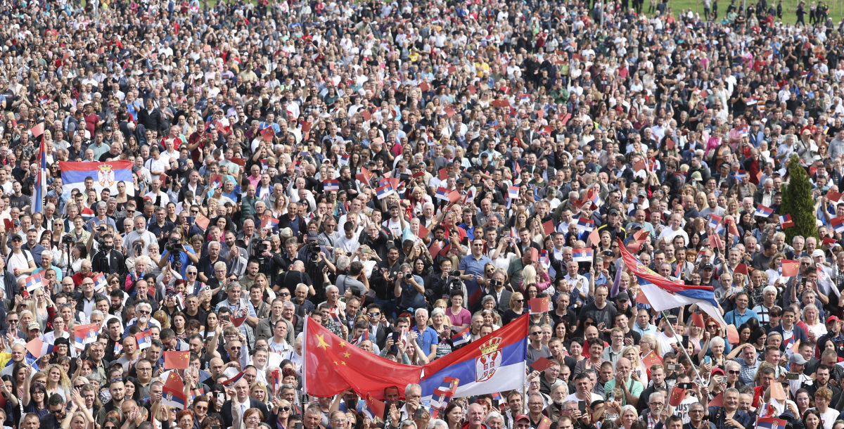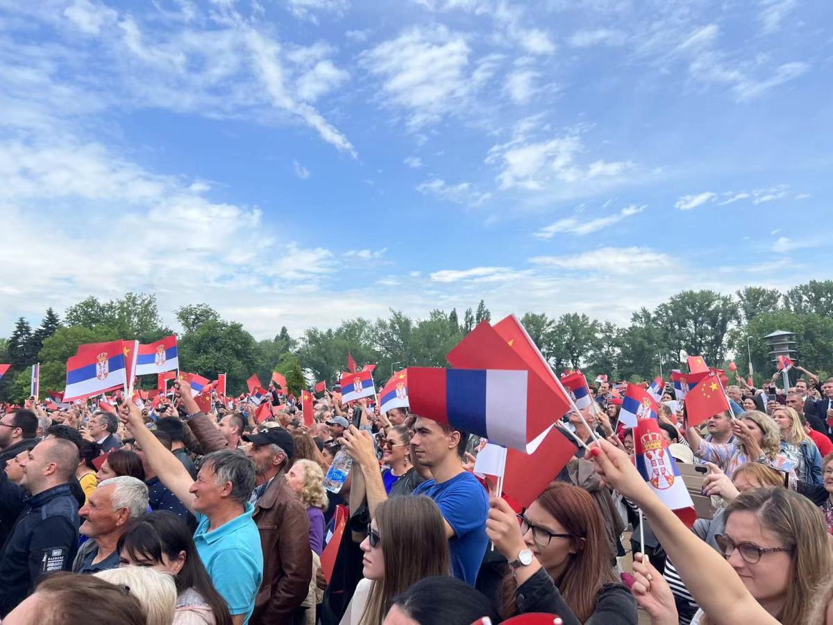據央視新聞報道,當地時間5月8日上午,武契奇陪同習近平來到政府大廈平台。大廈廣場上,一萬五千名塞爾維亞民眾揮舞中塞兩國國旗,對習近平表示最熱烈的歡迎。習近平向歡迎人群揮手示意。廣場上響起雷鳴般的掌聲,歡呼聲此起彼伏,經久不息。