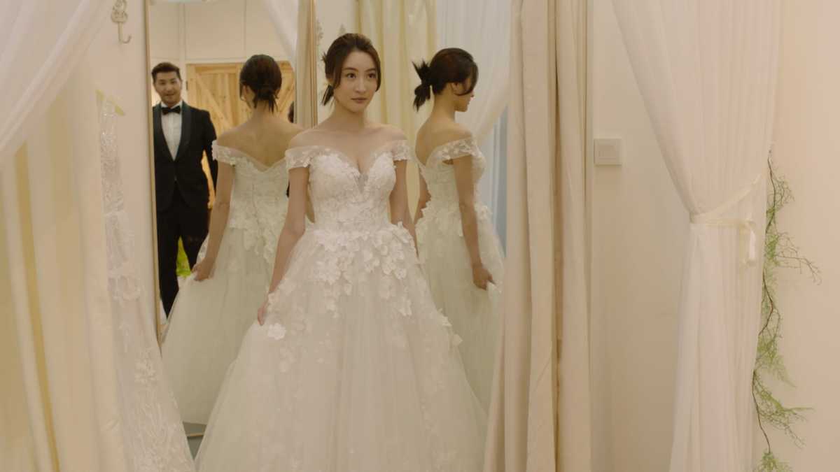 而扮演女主角阿Wing的林夏薇亦有亮眼演出,她與陳展鵬重修舊好後,大晒冷一次過換上3款婚紗,有前後Deep V婚紗、露肩婚紗和入膊式露背高衩婚紗。出名身材好的薇薇完美Carry 3款不同類型婚紗,大晒白滑香肩、完美玉背和無敵長腿,非常搶眼。