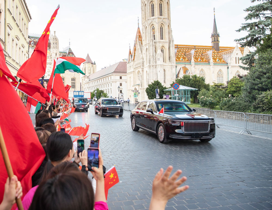 赴機場途中,旅匈華人華僑和留學生聚集在道路兩旁,揮舞中匈兩國國旗,舉着寫有「中匈友誼萬歲」等橫幅,熱烈歡送習近平主席,祝賀訪問取得圓滿成功。