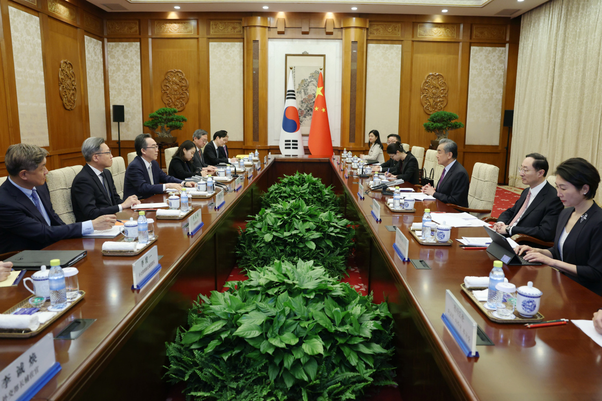 王毅指出,中韓之間沒有根本利害衝突,應追求和而不同的境界。雙方要相互理解尊重,加強溝通交往,消除誤解,增進互信。希望韓方恪守一個中國原則,妥善慎重處理涉台問題,夯實兩國關係的政治基礎。雙方要多發出客觀積極信息,加大正面引導,密切人文交流,夯實兩國關係的民意基礎。中韓經貿合作規模大,互補性強,去年貿易額突破3100億美元。中國正加快發展新質生產力,推動高質量發展,擴大高水平開放,這將為韓國帶來重要機遇。雙方應深化互利合作,在彼此發展進程中做可靠和長期夥伴,共同反對貿易保護主義,維護國際自由貿易體系,保障產供鏈穩定暢通。希望你這次工作訪問為中韓關係改善發展發揮積極作用。