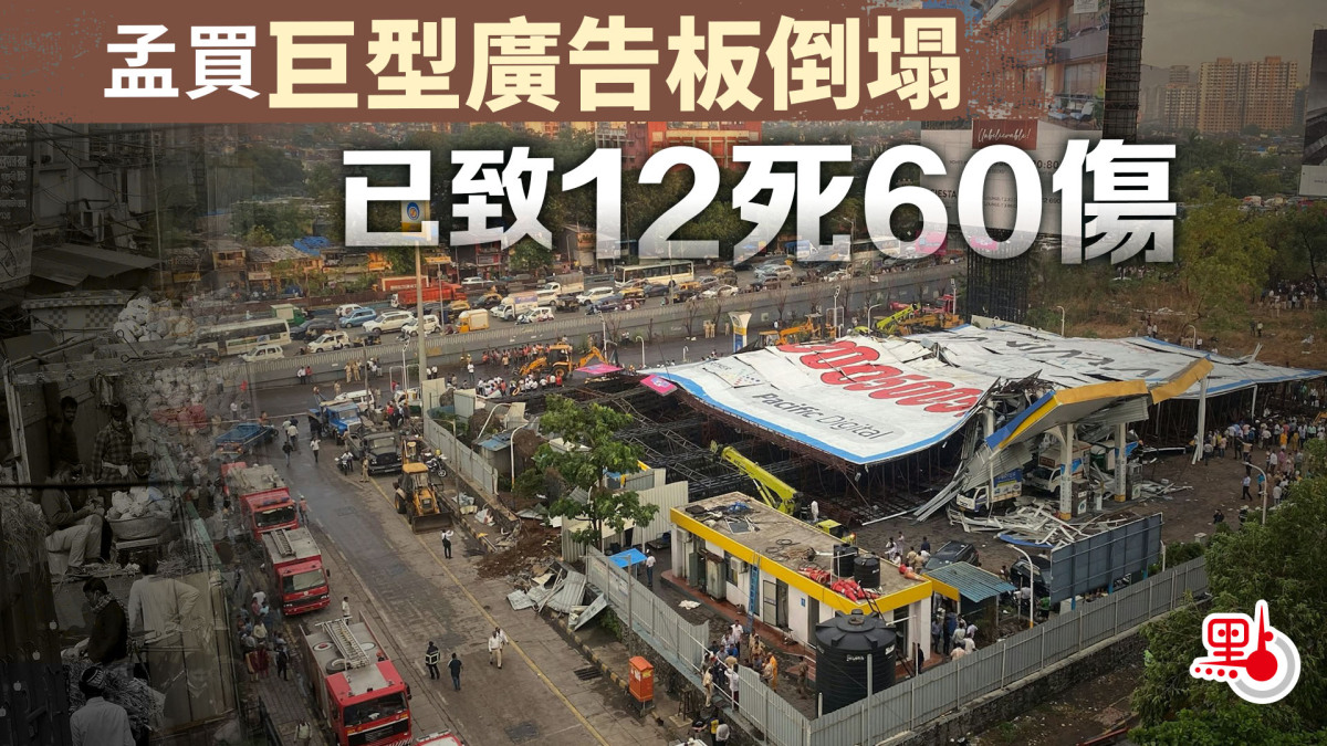 【點新聞報道】受季風季節影響,印度孟買昨日(13日)突現狂風暴雨,一塊巨型廣告牌在侵襲中倒塌。目前,該事故已造成12人死亡,至少60人受傷。