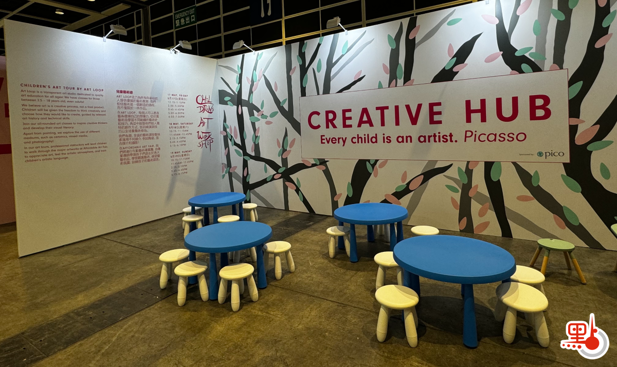 現場設有「Creative Hub」專區,配置繪畫工具,供家長帶小朋友使用。注重親子互動是此次展覽的一大特點。