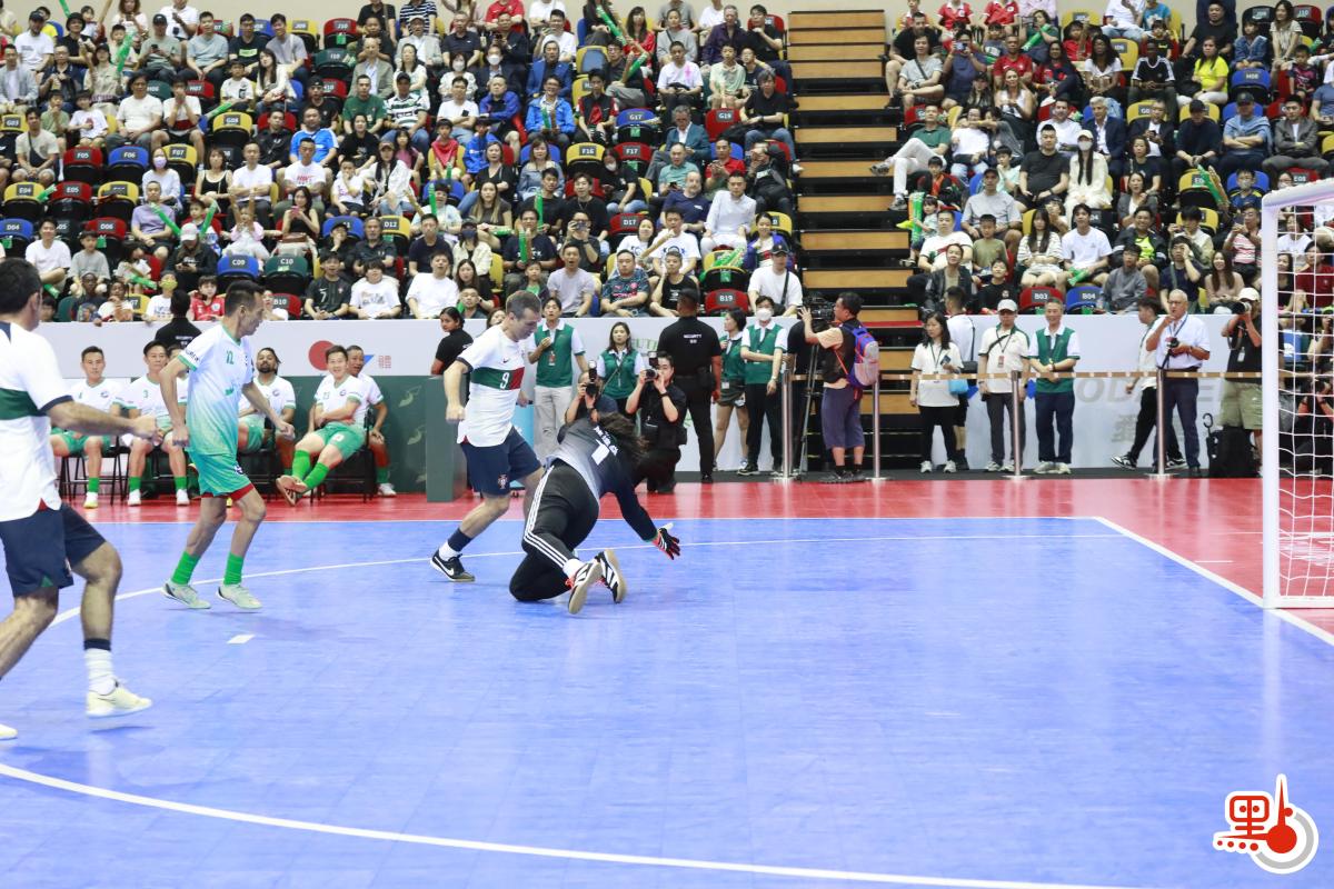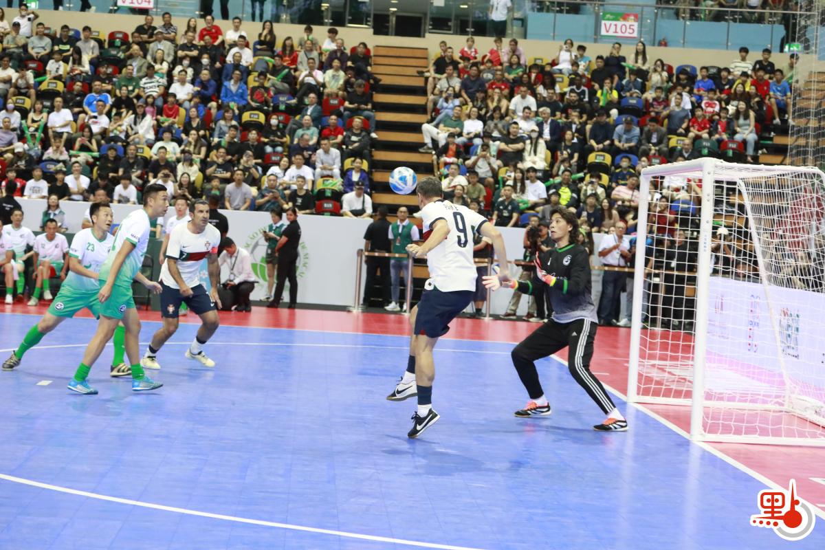 開波後,「葡萄牙傳奇」攻勢凌厲,即便澳門退役名將陳達燊多次英勇撲救,亦難阻對方得分。上半場,「葡萄牙傳奇」以5∶1,領先「大灣區飛龍」。半場休息結束後,「大灣區飛龍」開始表現神勇,胡志軍更加梅開兩度,為球隊拉近差距。賽事最終以11∶4結束。
