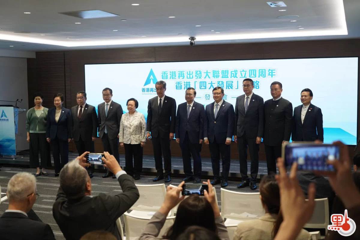 【點新聞報道】適逢香港再出發大聯盟成立四周年,大聯盟今日(20日)舉行記者會,公布香港「四大中心」發展與策略。香港再出發大聯盟總召集人梁振英、副秘書長王惠貞、黃英豪、譚惠珠、陳振彬及召集人霍啟剛、蘇錦樑等人出席。