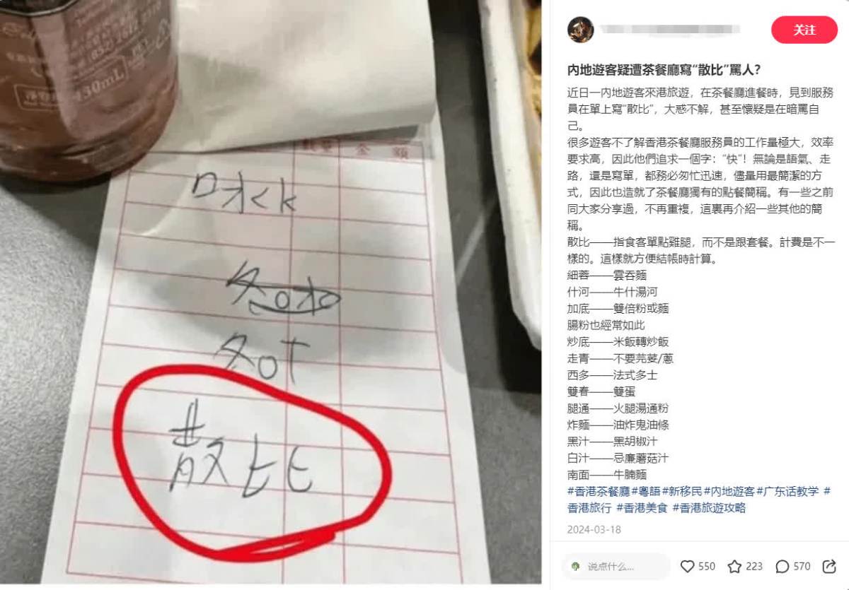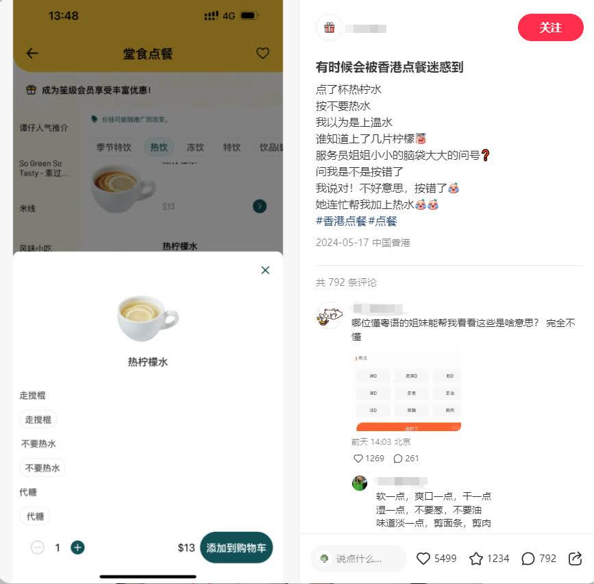 社媒上,有許多內地遊客分享自己在香港茶餐廳點單的囧事: