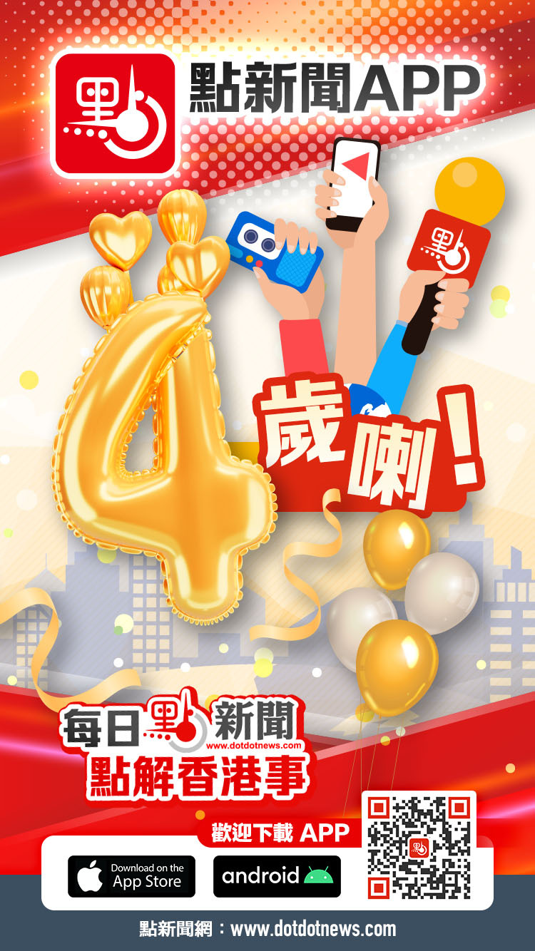【點新聞報道】2020年5月21日,點新聞APP正式上線。今日(5月21日),是點新聞APP四周歲的生日。四年來,點新聞一直陪伴市民,給讀者帶來最新的新聞、最熱的話題、最實用的資訊、最有效的觀點,報道新聞、緊貼熱點、還原真相,讓讀者更加了解香港,讓香港更加充滿希望!(點此下載點新聞APP)