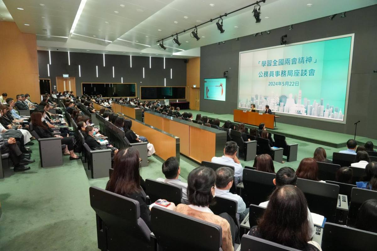 【點新聞報道】公務員事務局今日(22日)在政府總部舉行「學習貫徹2024年全國兩會精神」座談會,超過270人出席。公務員事務局局長楊何蓓茵在座談會上分享對今年兩會的兩個關鍵詞「新質生產力」及「高質量發展」的想法,希望公務員認真學習有關概念的重要內涵和背後思路,結合自身工作範疇,不斷增強香港的發展動能。
