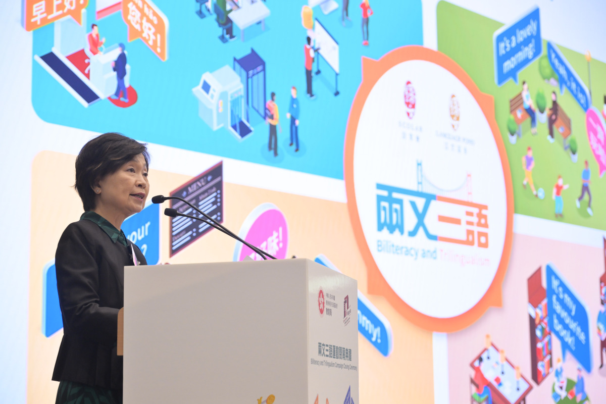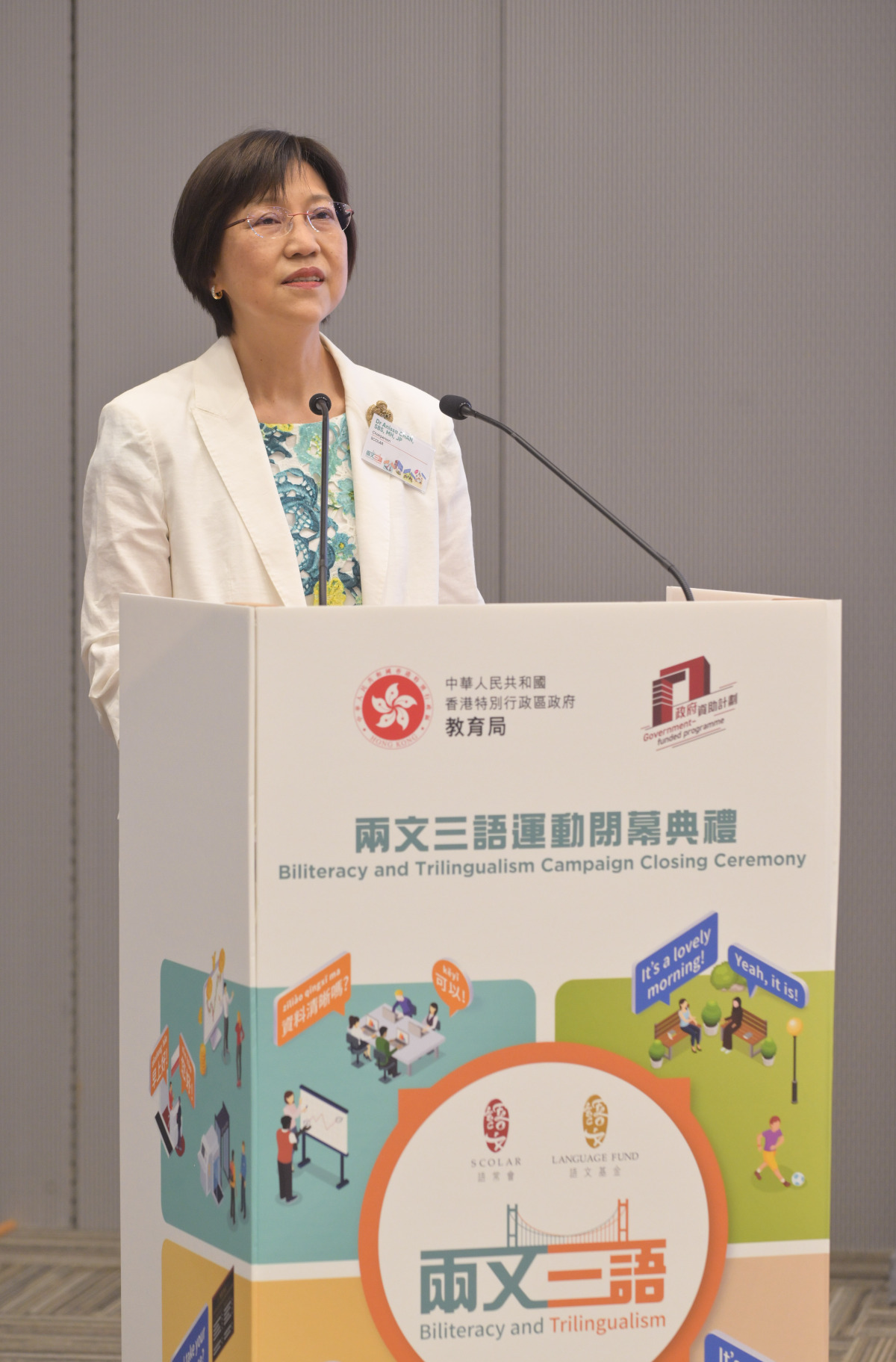 她指教育局一直致力培育香港學生掌握「兩文三語」的能力,除了課堂教學支援外,教育局經常與學校、學界組織和社會團體等協作,舉辦各類型的課外語文活動,提升學生語文學習的興趣和能力;創設平台,讓同學展示學習成果。